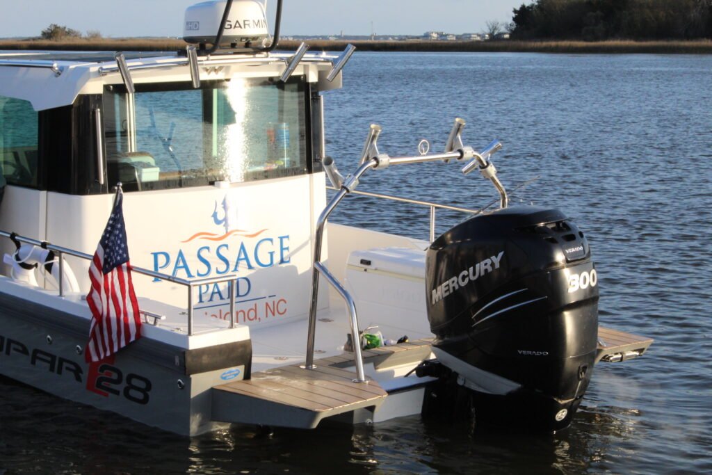 Step aboard The Passage Paid, a 28-foot Axopar 28 — yacht-certified and designed with passenger comfort in mind. This modern vessel offers a safe, smooth, and comfortable ride to and from Bald Head Island, no matter the weather.