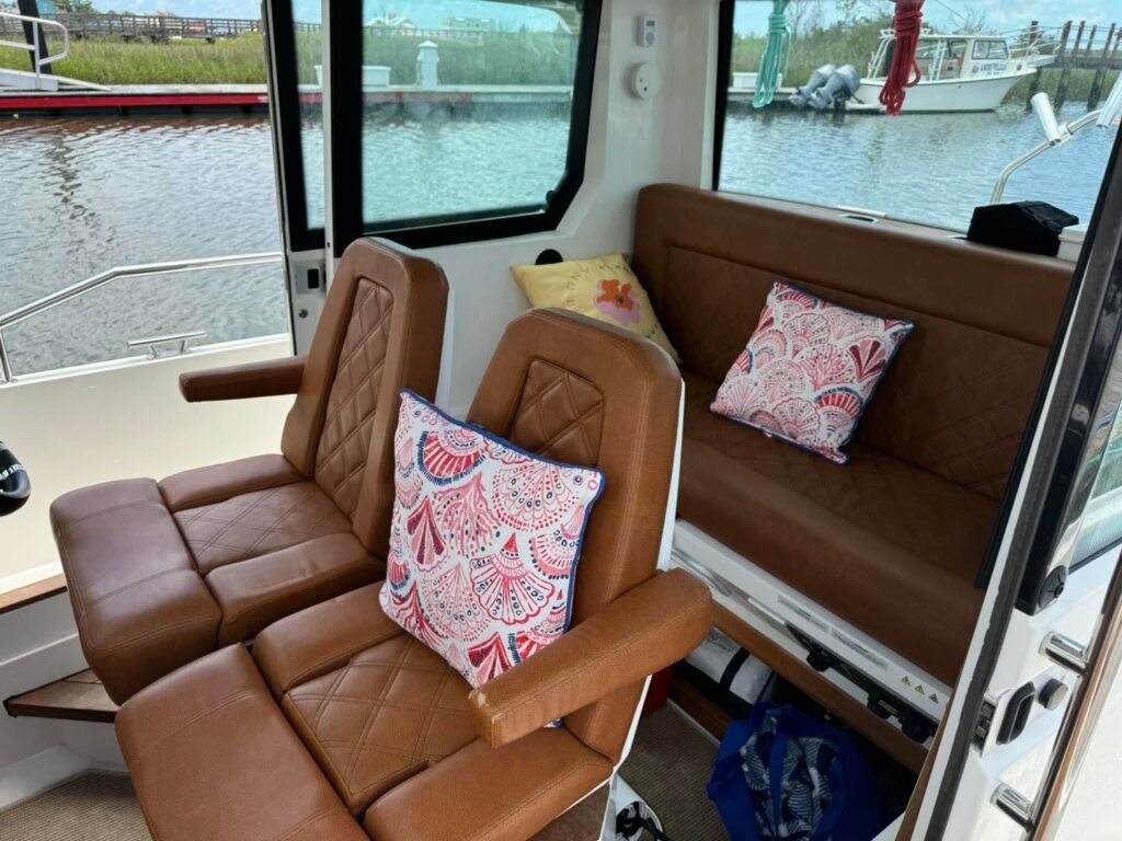 Enclosed cabin protects from sun, wind, and spray — perfect for all seasons